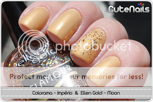 - Cobertura: 2 camadas de Império (Colorama) + 2 camadas de Moon (Ellen Gold) + 1 camada de extra brilho